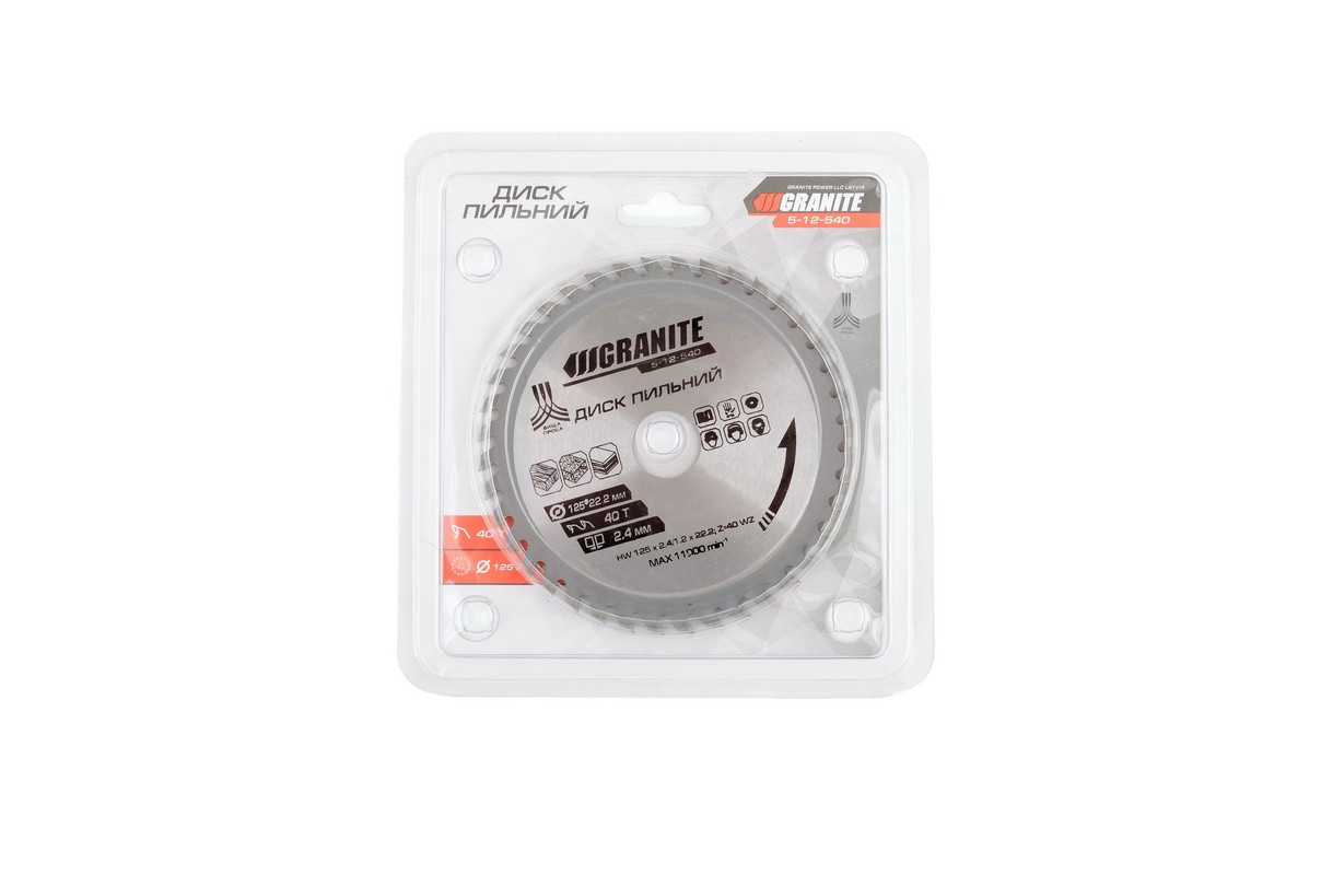Диск пильний для дерева з твердосплавними напайками 125*22,2*40Т, 11000 об/хв, GRANITE 5-12-540
